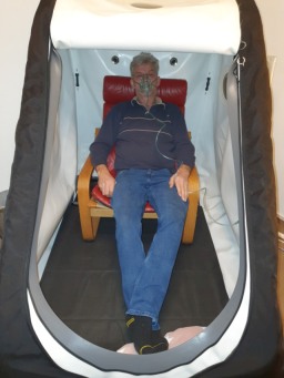 in Form der milden HBO ist eine spezielle, nicht medizinische Anwendung, bei der ca. 93 – 96% Sauerstoff unter 0,3 Bar atmosphärischem Überdruck in einer speziellen Druckkammer über eine Maske eingeatmet wird, um den Körper mit zusätzlichem Sauerstoff zu versorgen. Durch den erhöhten Umgebungsdruck in der Druckkammer wird die Sauerstoffaufnahme über die Lunge maximiert.